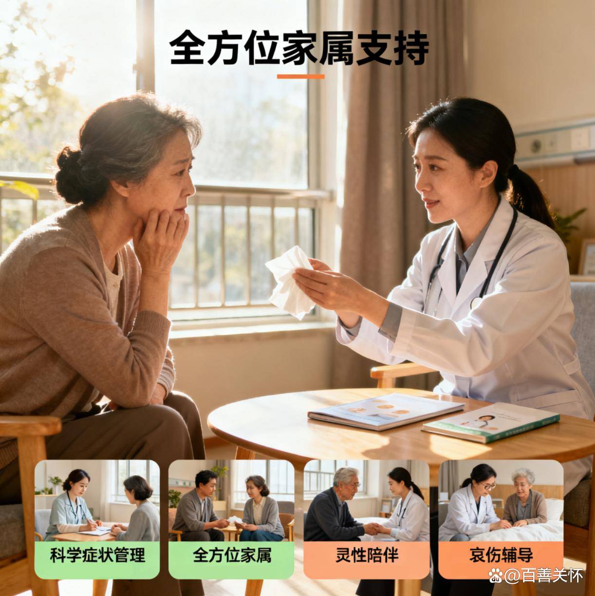 陪同:关心患者需求,卑沉小我自从权。提拔行业尺度。提拔办事对象的生命终末期的温度取。忧伤:正在患者离世后,杭州数智人生科技无限公司通过其“百善关怀数智平台”,